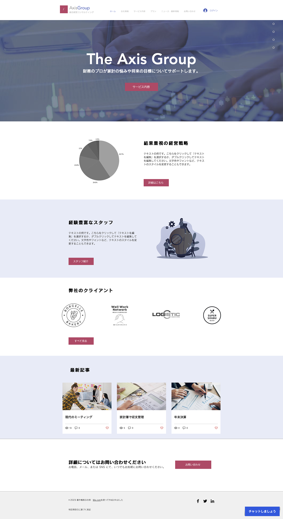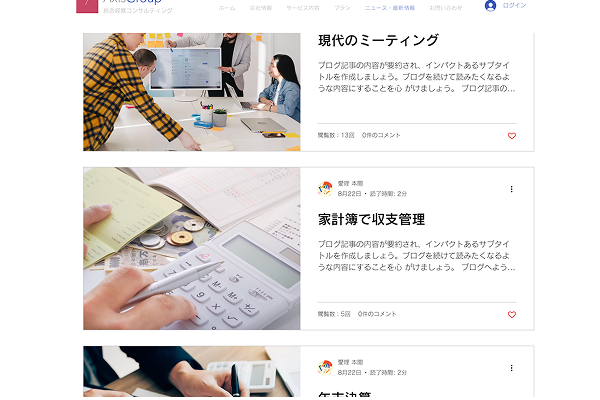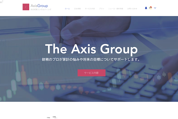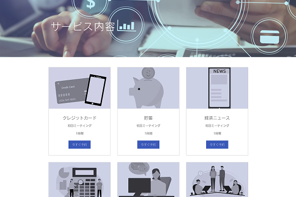 お金やビジネスの悩みをサポートする姿勢が伝わるよう、誰でも分かりやすいシンプルなデザインになっています。