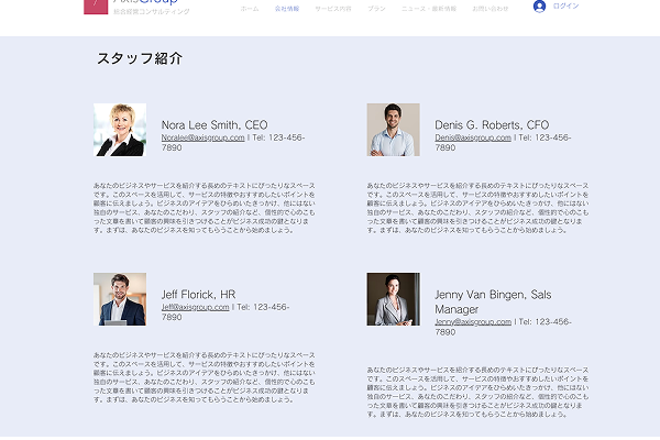 スクールの課題で、Wixを使用して架空のコーポレートサイトを作成しました。